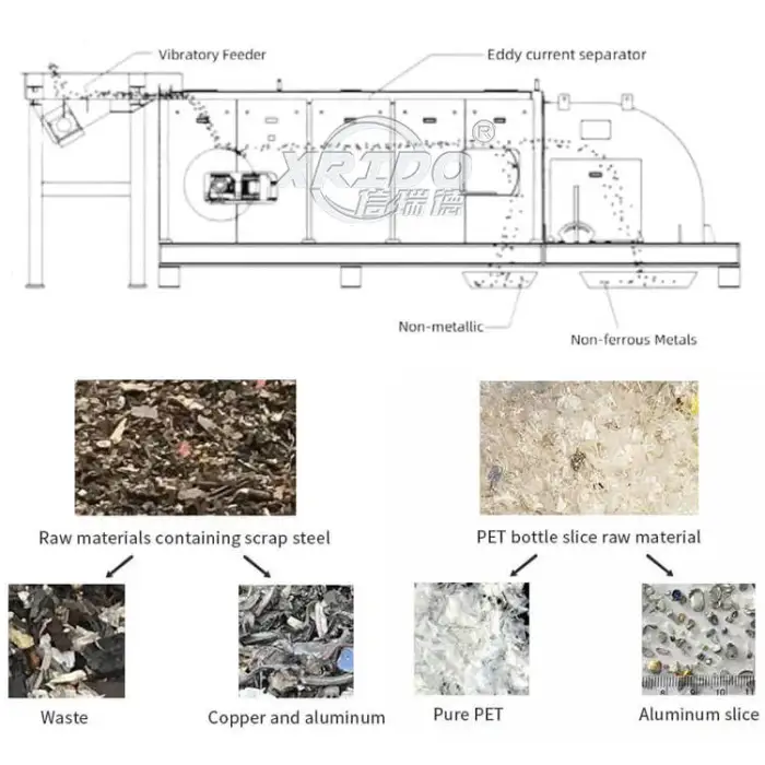 This machine is designed to sort non-ferrous metals, specifically aluminum and copper, as well as separate aluminum from steel.