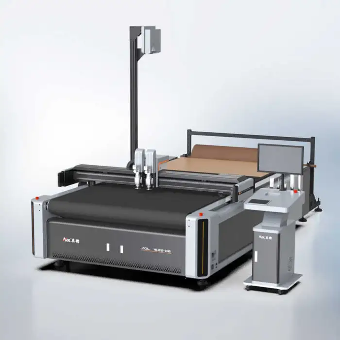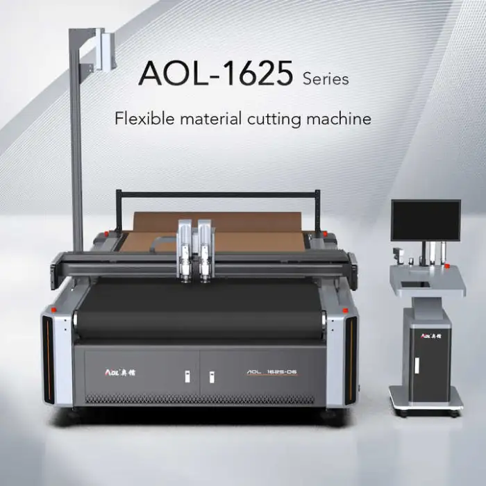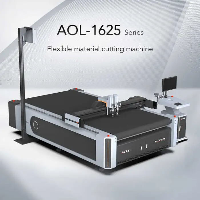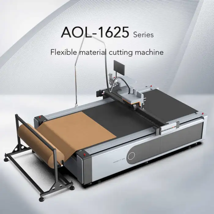The AOL 1625 1825 CNC cutting machine is designed to cut various materials including textile cloth, fabric, and leather.