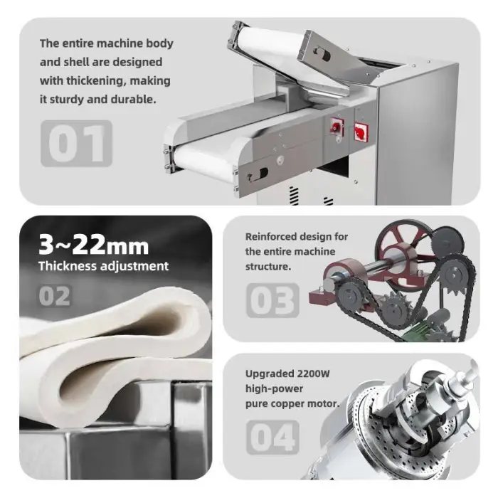 With its high productivity capabilities, the Auto Dough Sheeter allows for quick dough preparation, reducing the time spent on manual rolling.