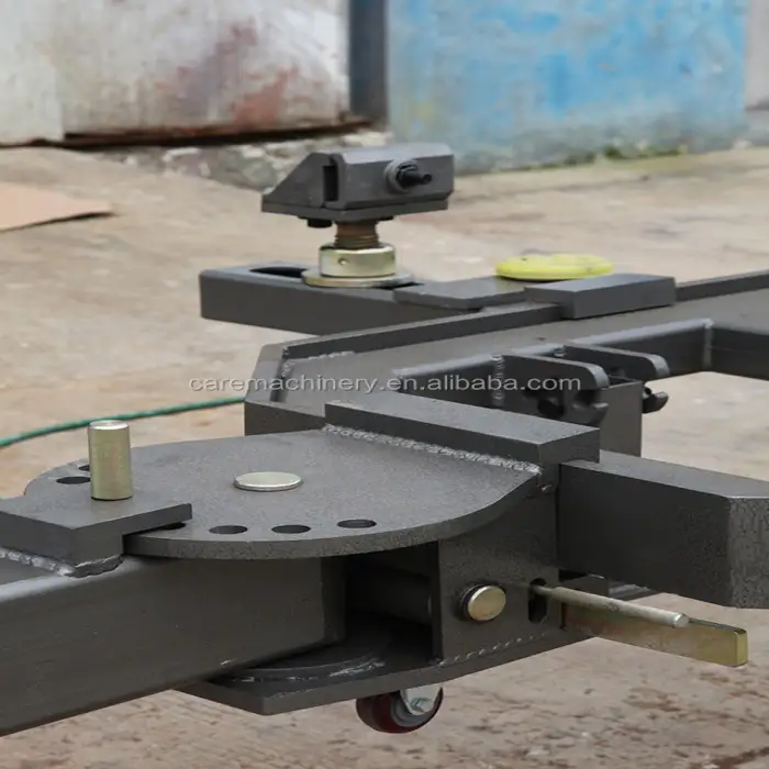 The machine is designed for car body straightening and is useful for restoring damaged vehicles.