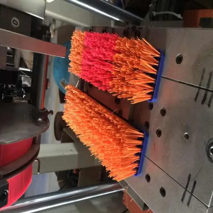 The machine is rated to produce up to 2,500 brush brooms per 10 hours. Actual output depends on filament type, tuft pattern, filament length, operator setup and work pace.