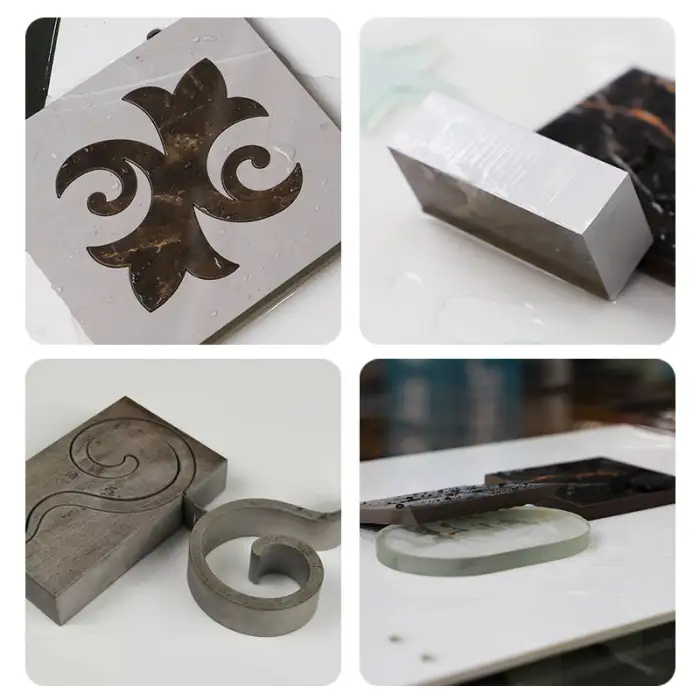 Applications include cutting ceramic tiles for flooring, shaping glass for windows, creating custom designs in marble, and precision cutting for artistic projects.