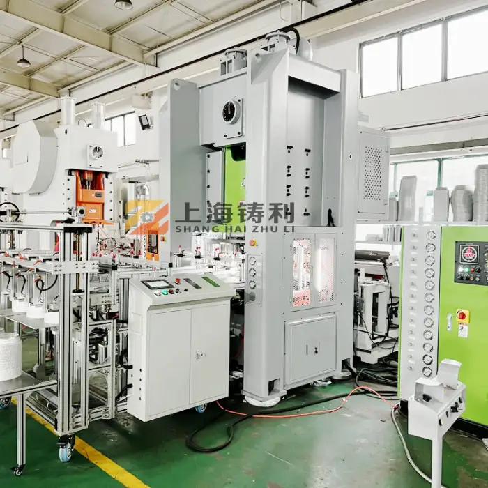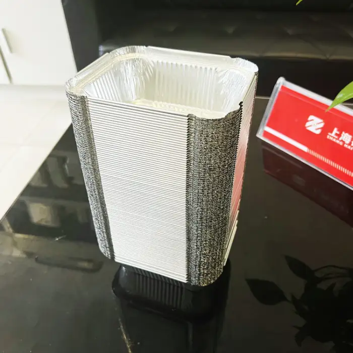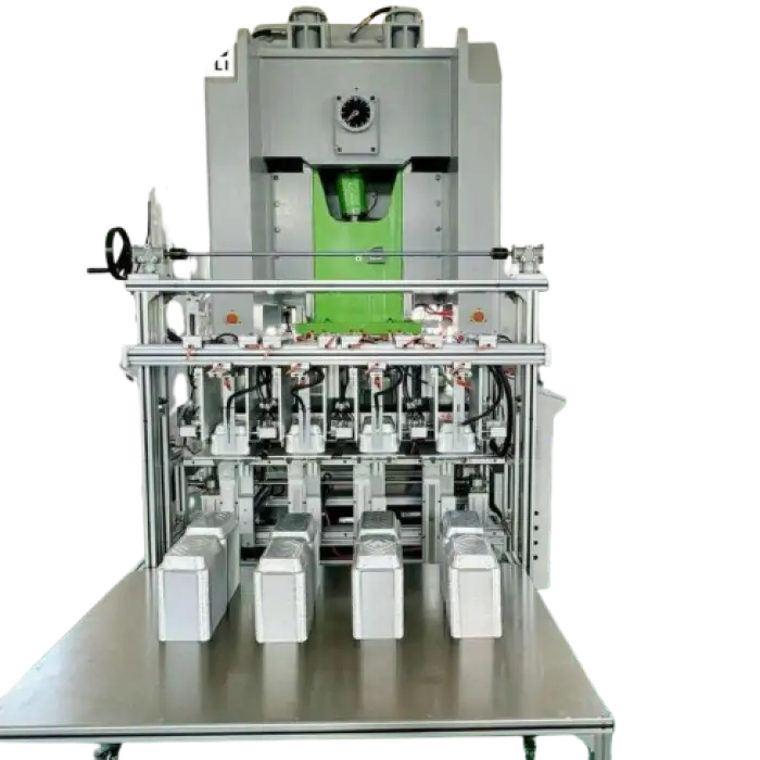 This machine is designed to produce aluminum foil cups, plates, and various container sizes suitable for food service and takeout meals.