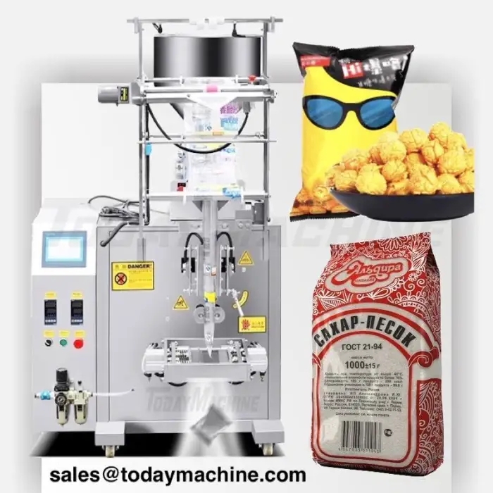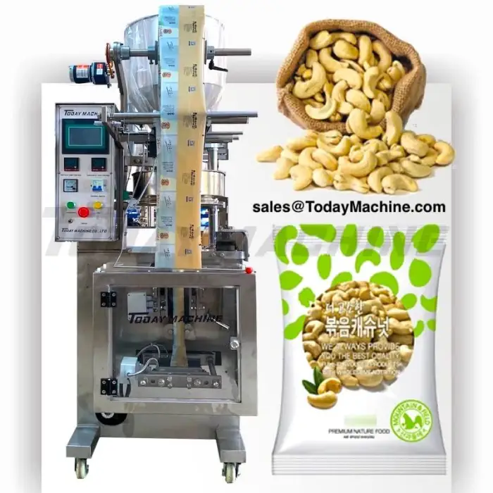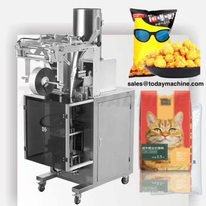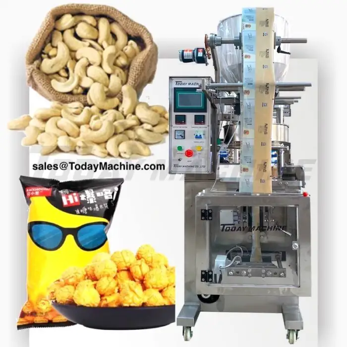 The Automatic Bag/Triangle Bag Cheese Ball/Candy/Chocolate Beans Filling Packaging Machinery can package various products, including cheese balls, candies, and chocolate beans.