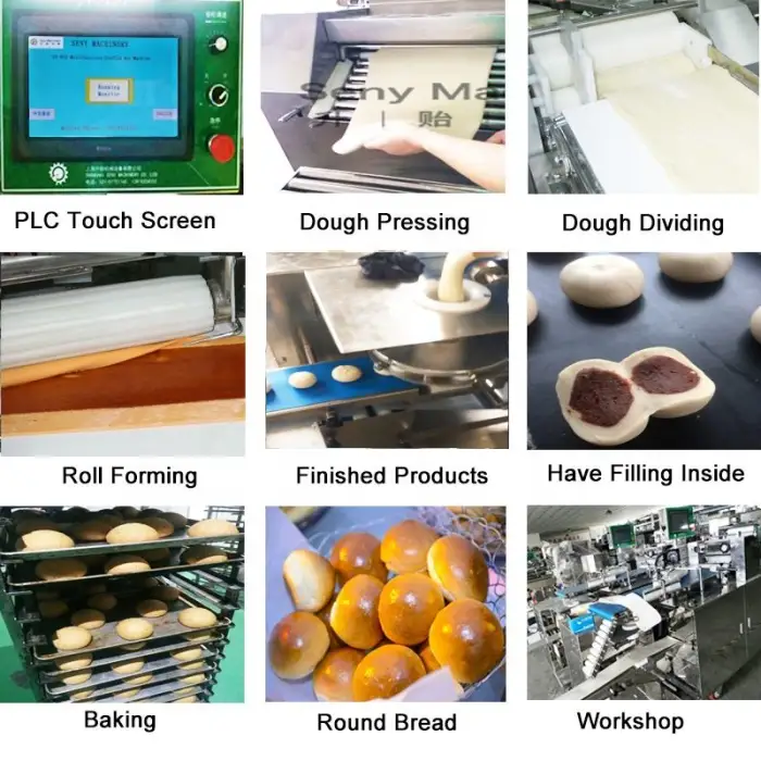 Key features include automatic operation, high efficiency, multi-function capabilities for different bread types, and customizable capacity.