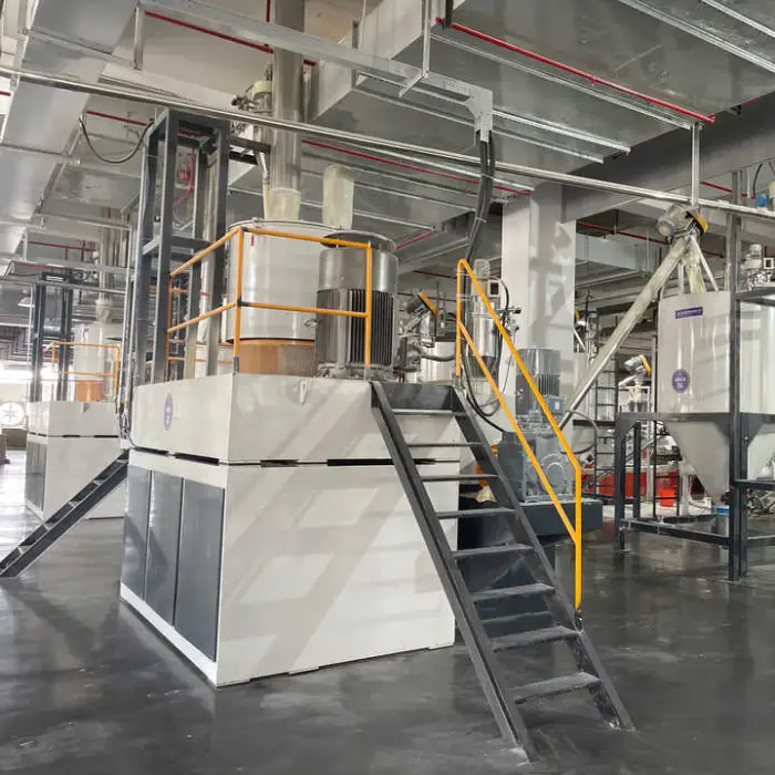 This system is ideal for industries that require high-volume plastic mixing, including flooring production and composite material creation.