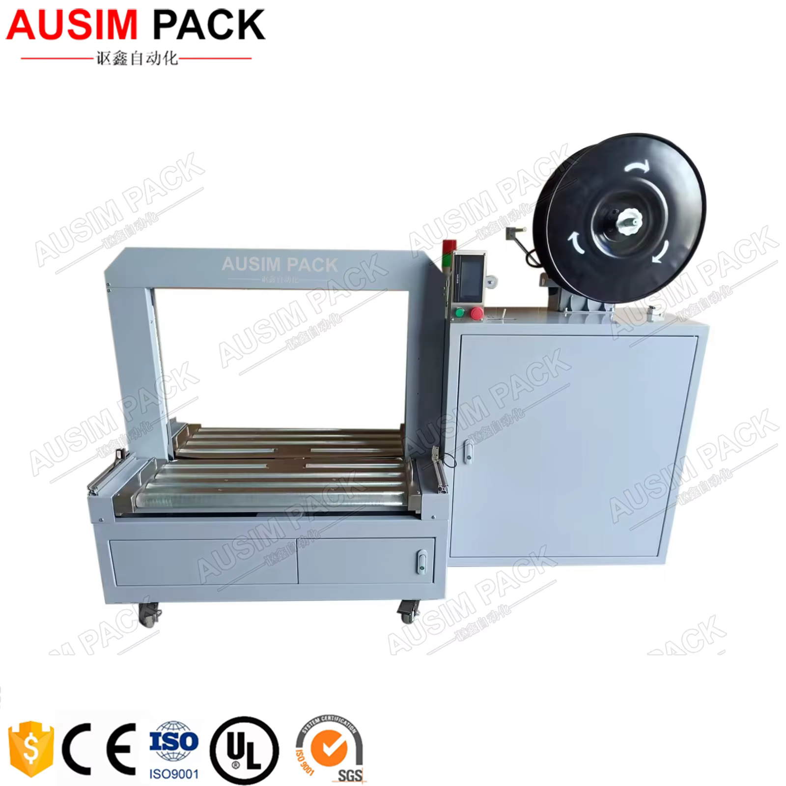 The automatic operation allows for quick and consistent strapping, significantly reducing manual labor and increasing productivity.