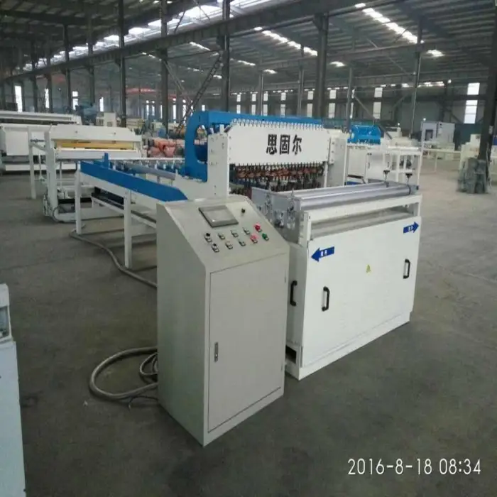 The machine can handle welding mesh widths of 1200mm, 1500mm, 2000mm, and 2500mm.
