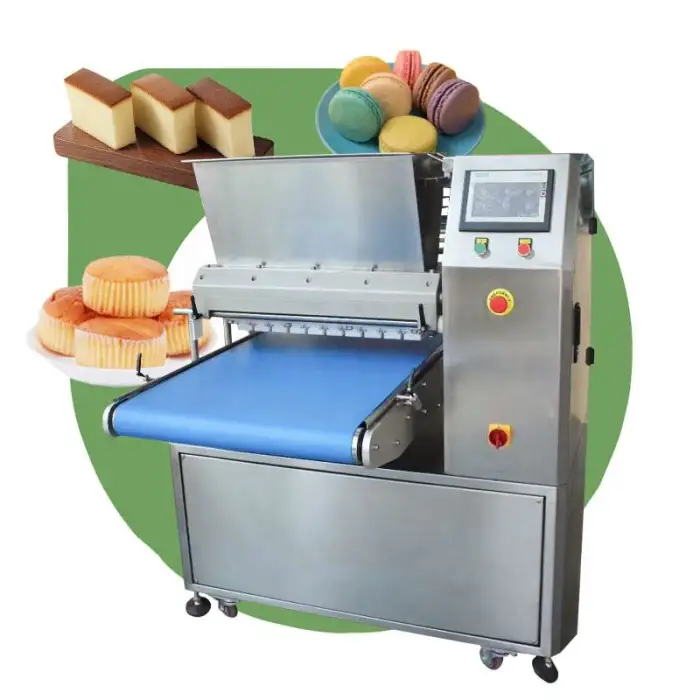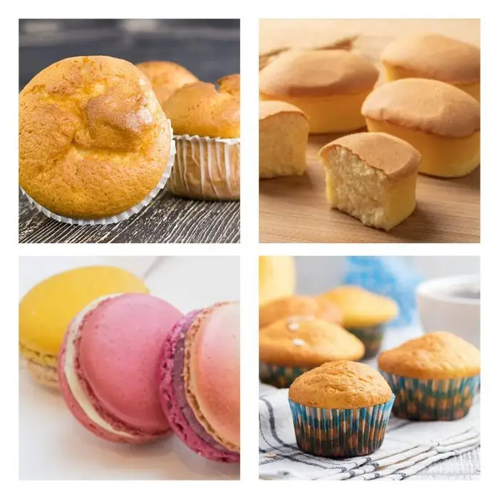 The machine can produce a variety of desserts including cupcakes, macarons, Swiss rolls, and more.