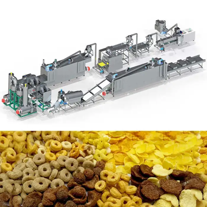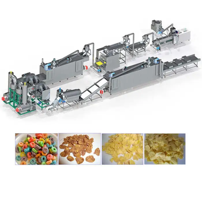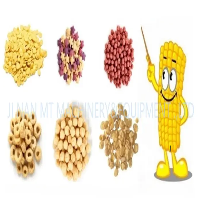 The machine requires corn and wheat flour as raw materials to produce snacks.
