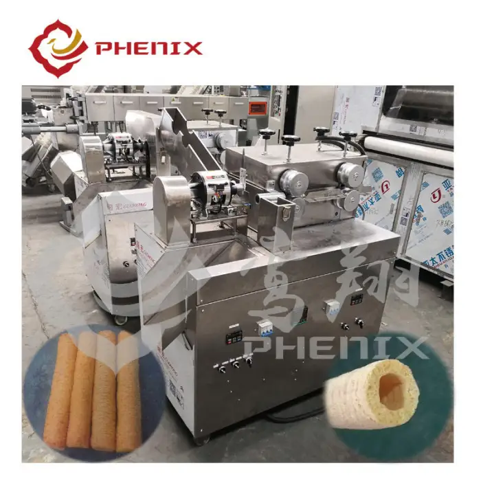The Automatic Corn Sticks Cheese Puffs Snacks Extruder Machine is designed to produce cheese puffs and corn sticks, as well as other snacks using various raw materials like corn, rice, wheat, oat, and barley.