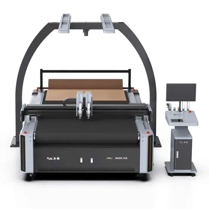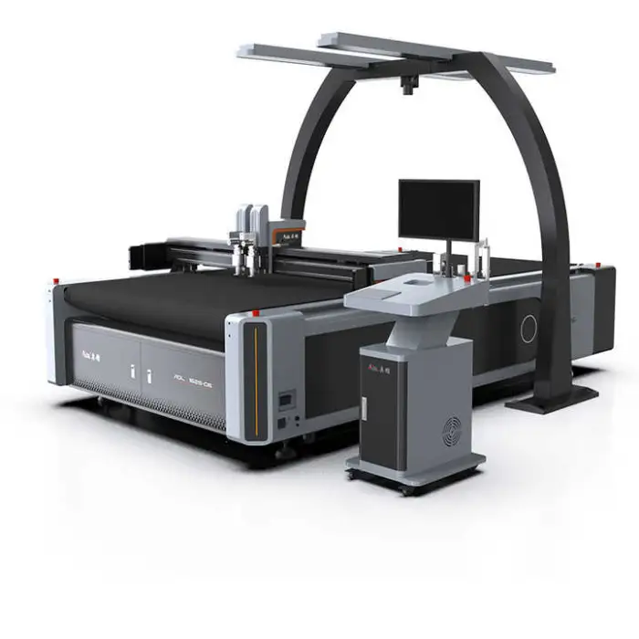 This machine can cut various materials including PVC fabric, carpets, leather, and more, making it versatile for upholstery, automotive interiors, and industrial applications.