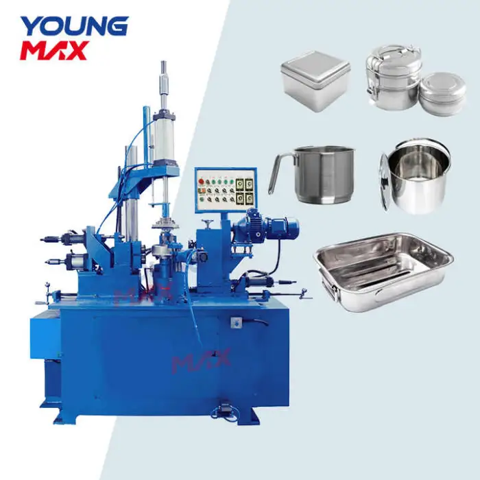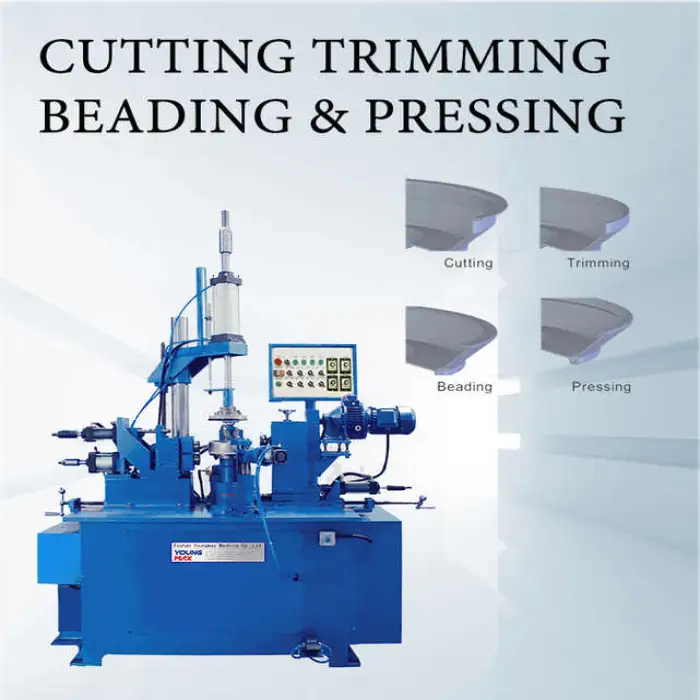 The Automatic Edge Cutting, Trimming, Beading and Pressing Machine is designed to work with various kitchenware materials, including metals and plastics commonly used in cookware and utensils.