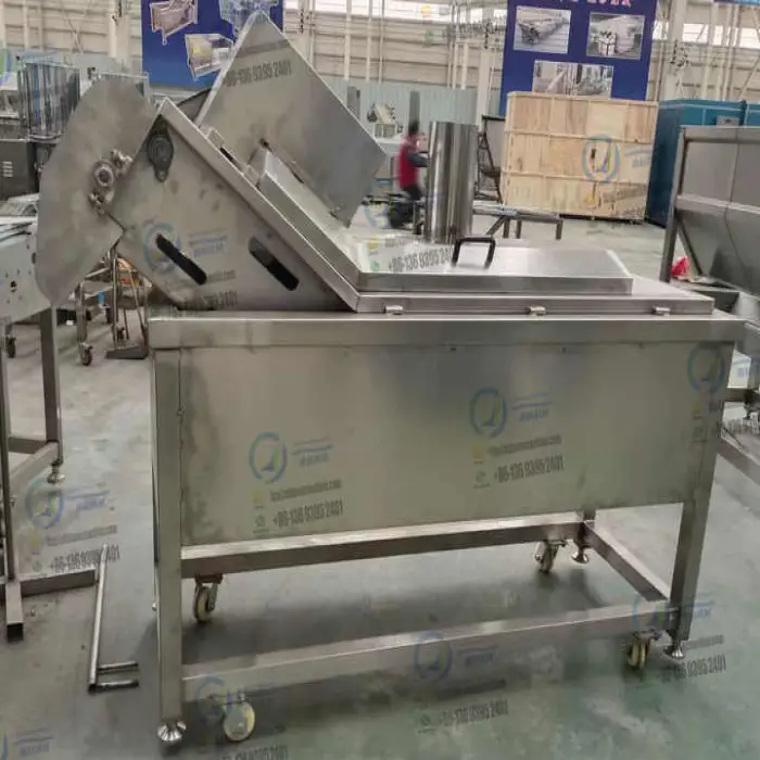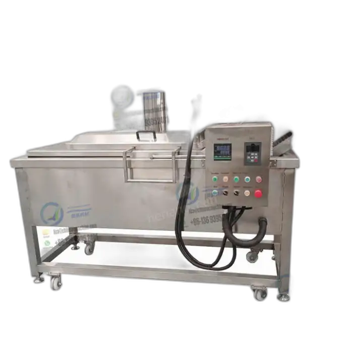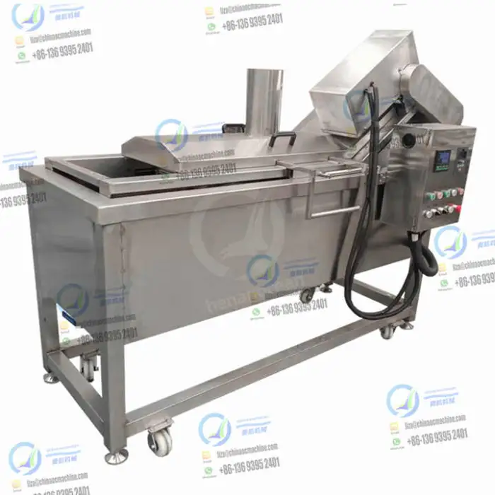 The frying machine features an advanced gas heating system that ensures efficient and even frying.