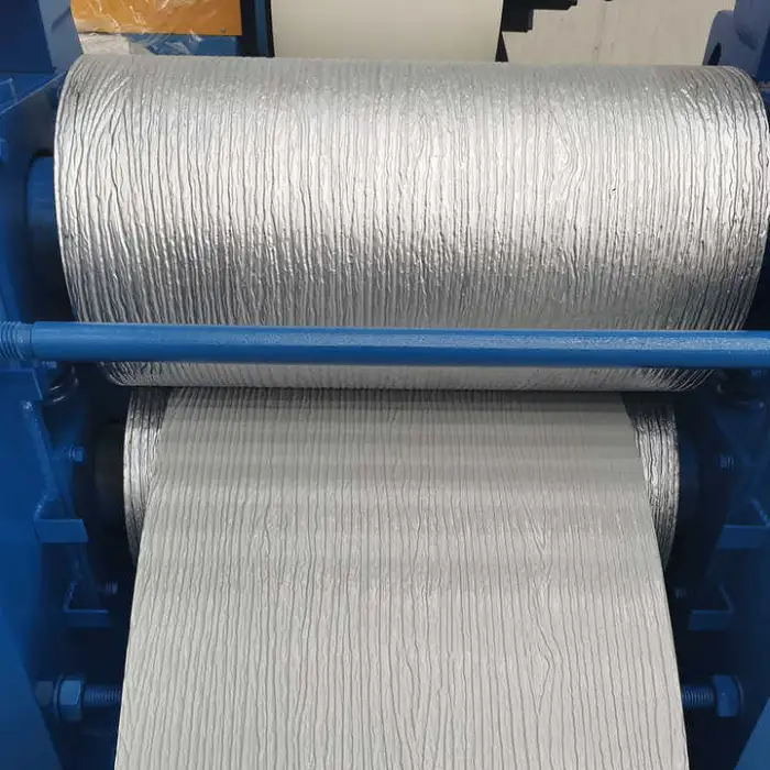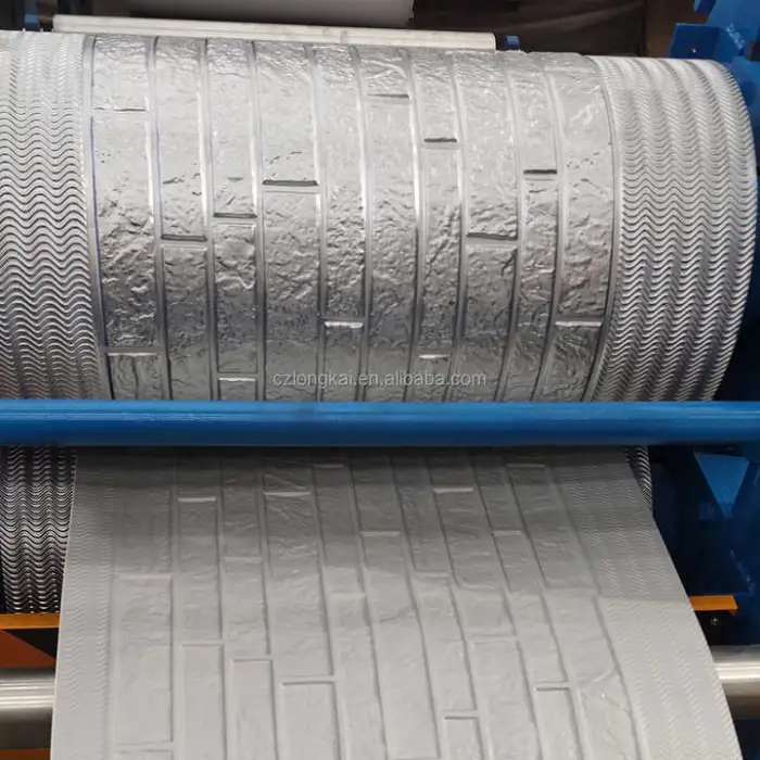 The machine is designed to work with colorful steel and aluminum plates, allowing you to create stunning stone patterns on various wallboard materials.