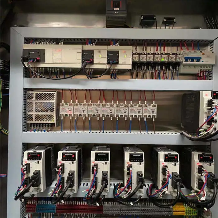 The core components include a motor and a PLC (Programmable Logic Controller) for precise control.