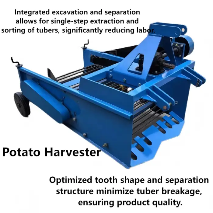 This mini combine machine is designed to efficiently harvest potatoes, sweet potatoes, cassava, and carrots.