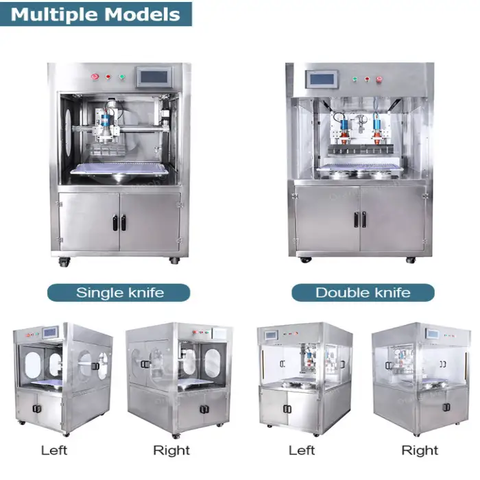 The Automatic Frozen Cake Cutter features a touch control system for easy operation.