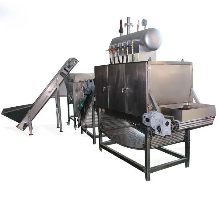 The machine produces peeled garlic cloves, ready for further processing or immediate use in culinary applications.