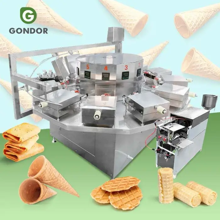 You can make ice cream cones, egg rolls, and waffles using the Automatic Gas Heated Commercial Ice Cream Waffle Crispy Cone Wafer Stick Egg Roll Maker.