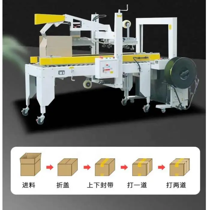 It automatically seals the top and bottom of cartons using BOPP tape, providing fully automatic carton sealing for packing and shipping.