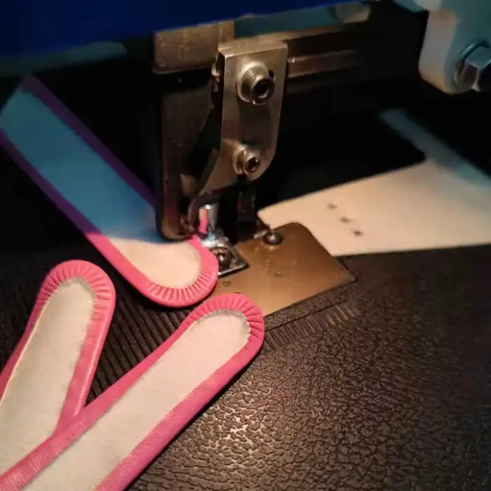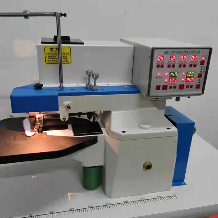 The machine is designed specifically for leather materials, making it ideal for shoe and bag production.