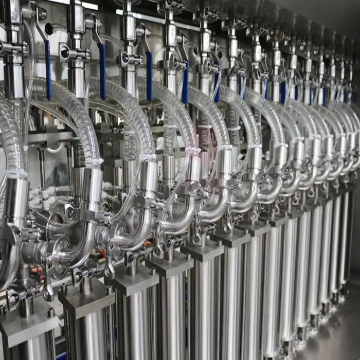 Design uses stainless steel for easy cleaning. Routine maintenance includes scheduled cleaning of product-contact parts, inspections of seals and pumps, lubrication of moving parts, and calibration checks. Suppliers usually provide maintenance manuals and spare-parts lists.