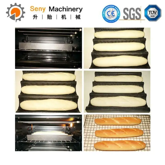 This machine can produce a variety of bread types including baguettes, burger buns, and French bread.