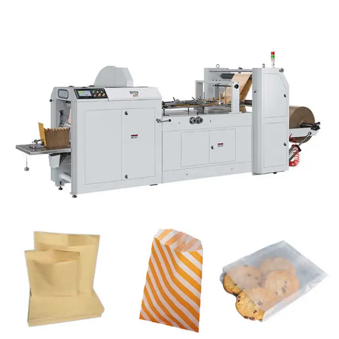 Maximum mechanical speed is 500 bags per minute (theoretical). Actual throughput depends on bag dimensions, paper quality, design (printed or laminated), and processing settings. At the maximum speed of 500 bags/min the theoretical output is 30,000 bags/hour; real-world rates are typically lower when using larger bags or additional processing.