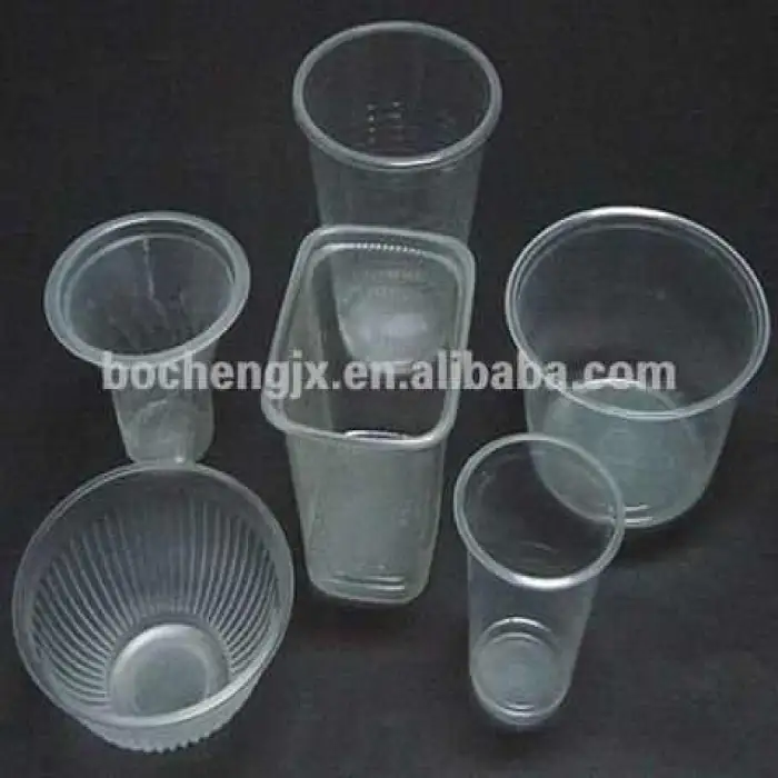The Automatic High Speed Plastic Cup Making Machine can process PS, PP, and PET plastics.