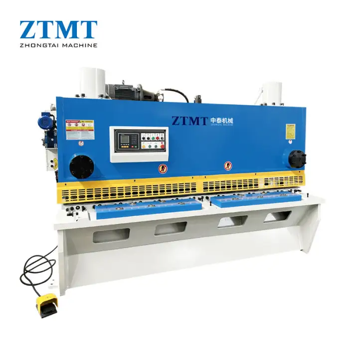 This shearing machine is designed for processing various types of sheet metal, including steel plates.