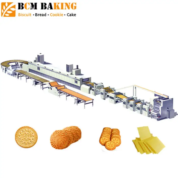 The Automatic Industrial Bakery Production Line Gas Tunnel Oven is versatile and can bake a variety of products including bread, biscuits, cakes, cookies, and Swiss rolls.