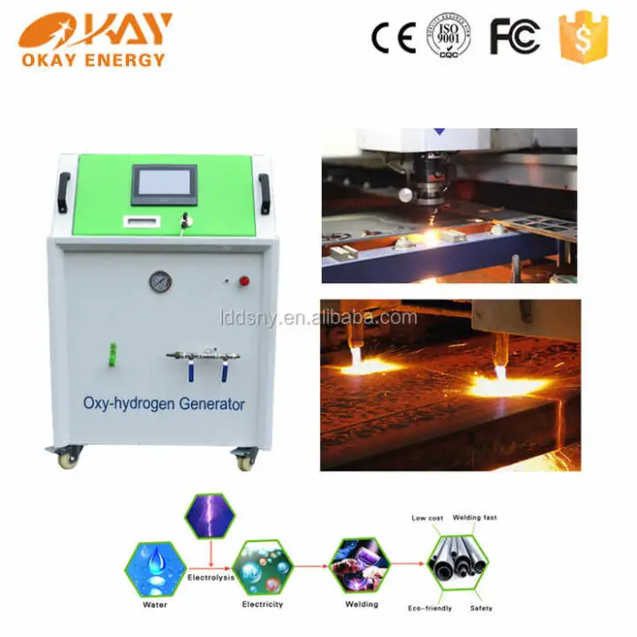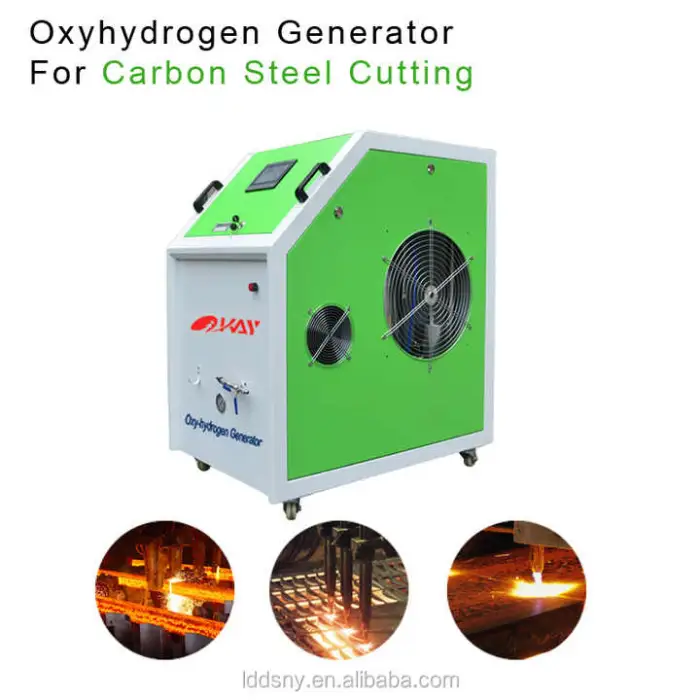 Core component: electrolytic cell (generates oxyhydrogen). Other key parts include the cutting head, water feed system (automatic), control unit and safety devices.