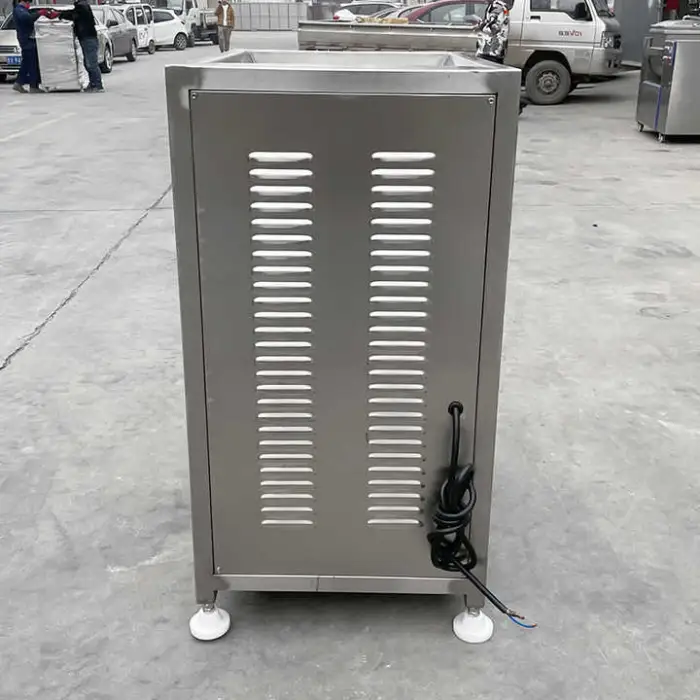 The machine is constructed from 304 stainless steel, which is corrosion-resistant and commonly used for food-contact surfaces.