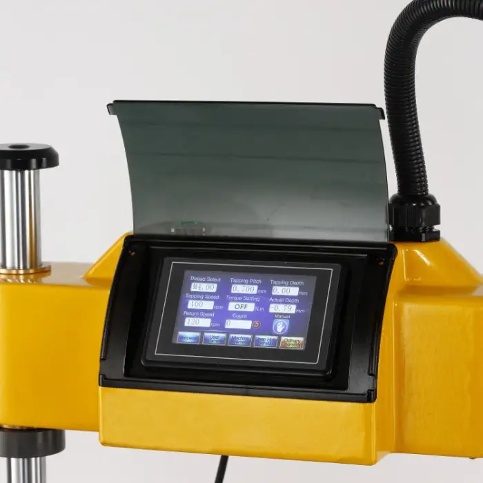 The tapping machine is designed for high precision, ensuring accurate threading.