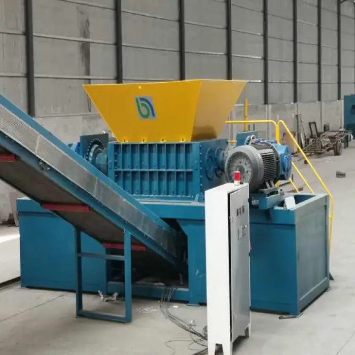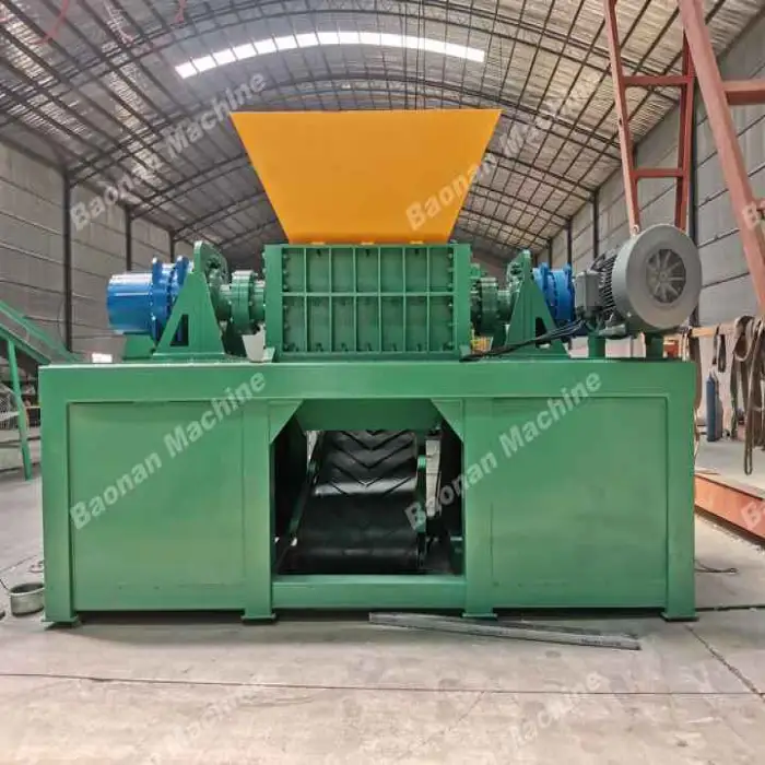 The shredder is designed for automatic operation with a hydraulic/electromechanical feeding and control system (PLC controls are typical). Operators monitor the process and perform routine interventions like clearing jams and maintenance.