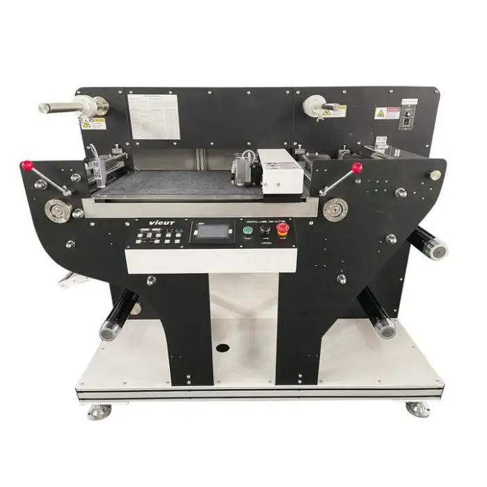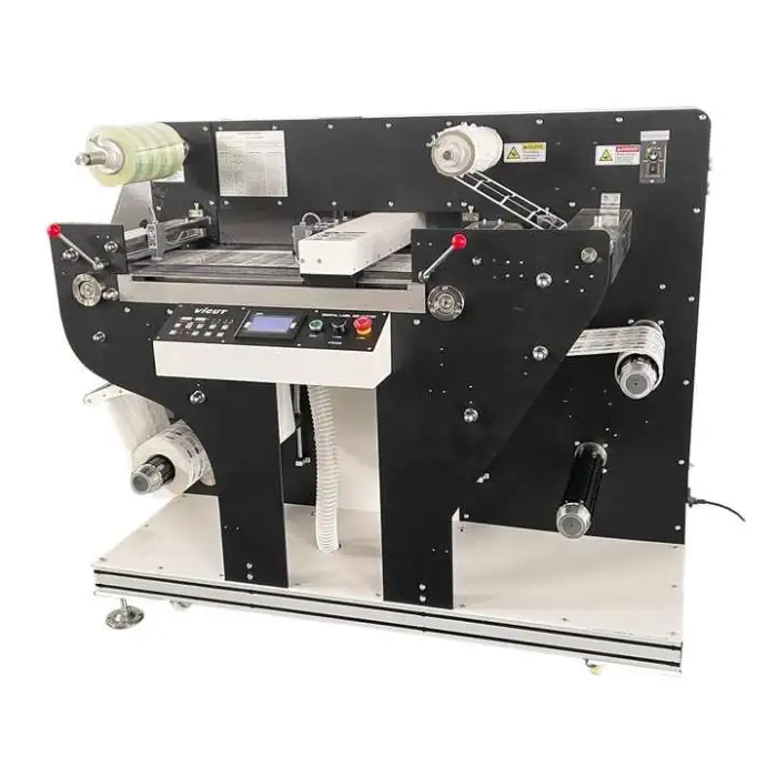 The Automatic Laser Label Stickers Paper Roll Die Cutting Machine VR320 operates on either 220V or 110V.