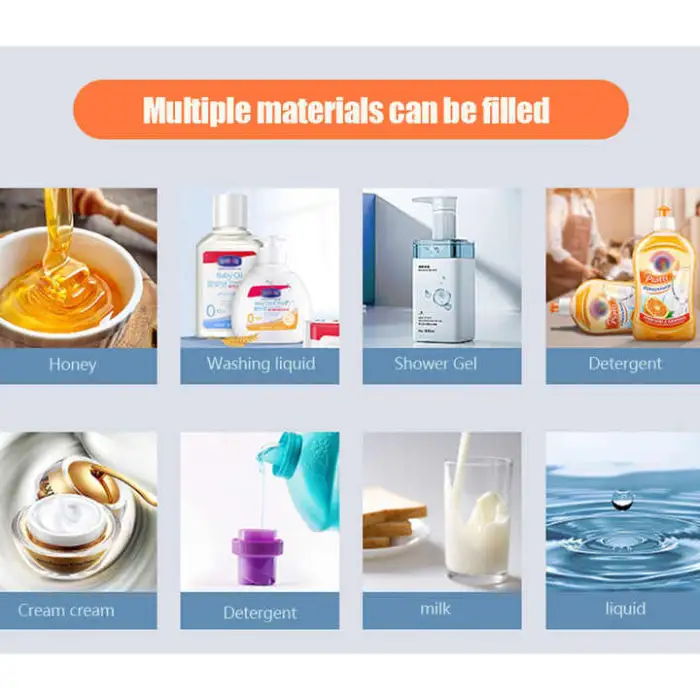 The machine can fill various liquids, including wax, water, oils, milk, and juice.