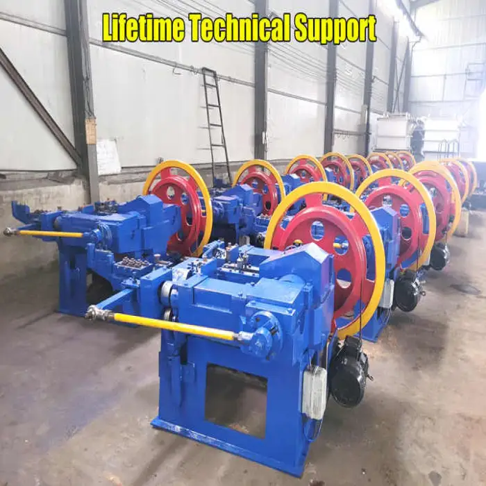 Output speed depends on nail length, wire diameter and tooling. The specification doesn't list a fixed pieces-per-minute rate—contact the supplier with your target nail size for estimated production rates.
