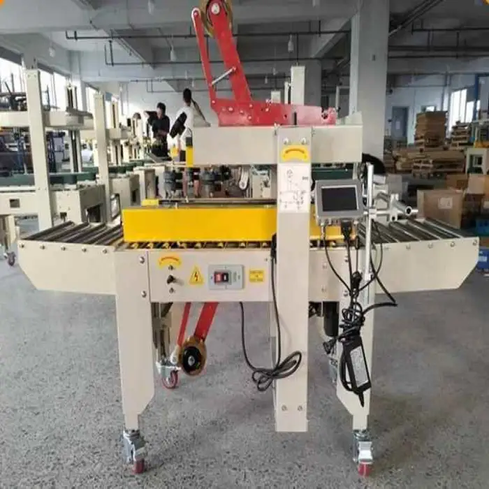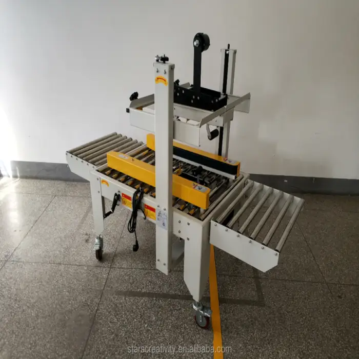 A semi-automatic, electric-driven machine that seals cartons using adhesive tape. It is designed to simplify and speed up carton sealing for food, beverage and other product packaging.