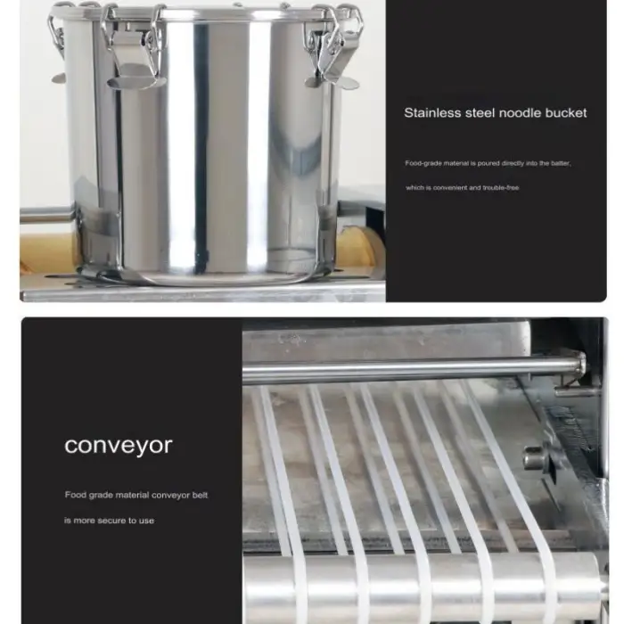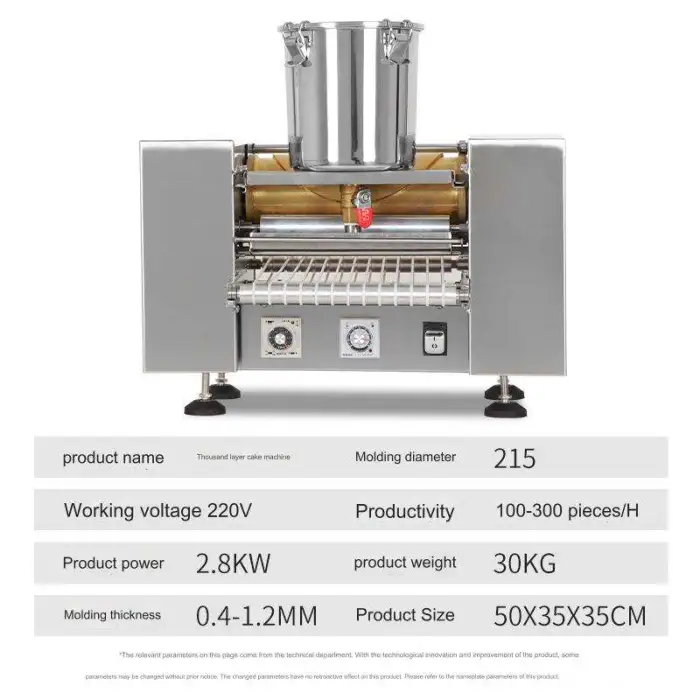 The machine can produce approximately 300–500 sheets (crepes/pancakes) per hour; actual output depends on recipe, sheet size, cook time and operator settings.