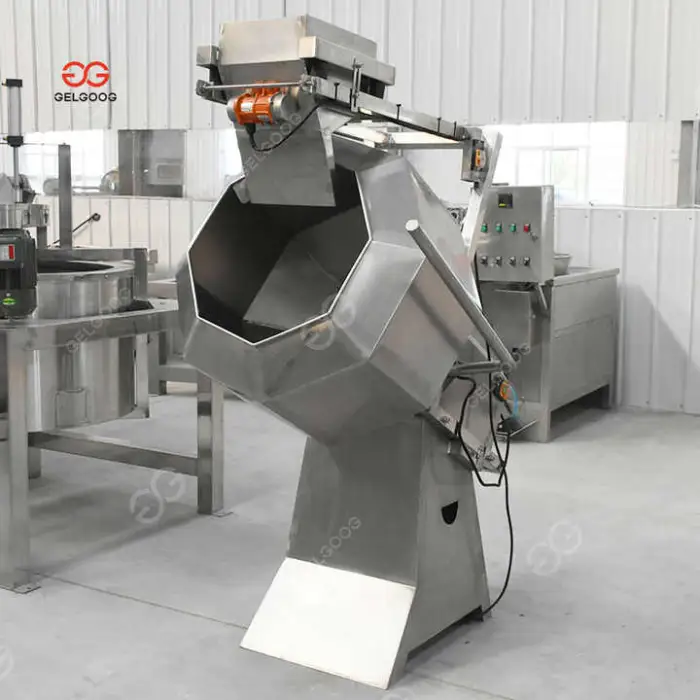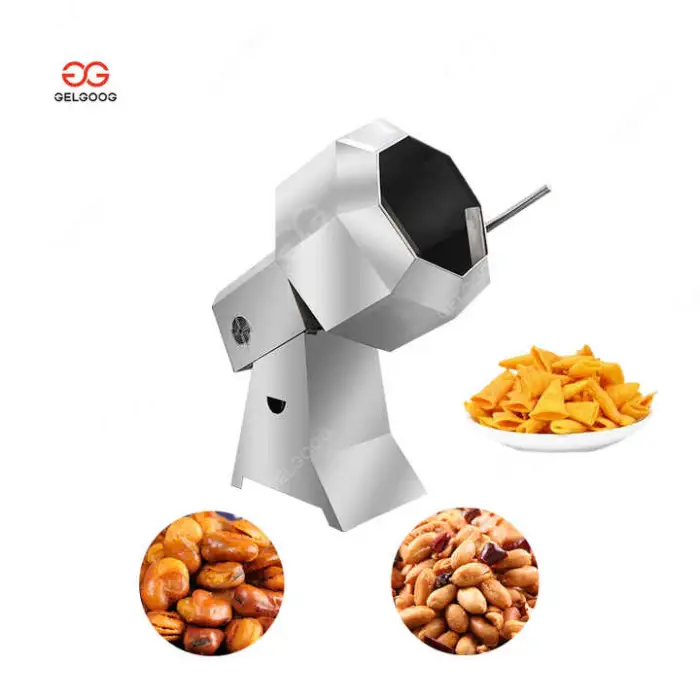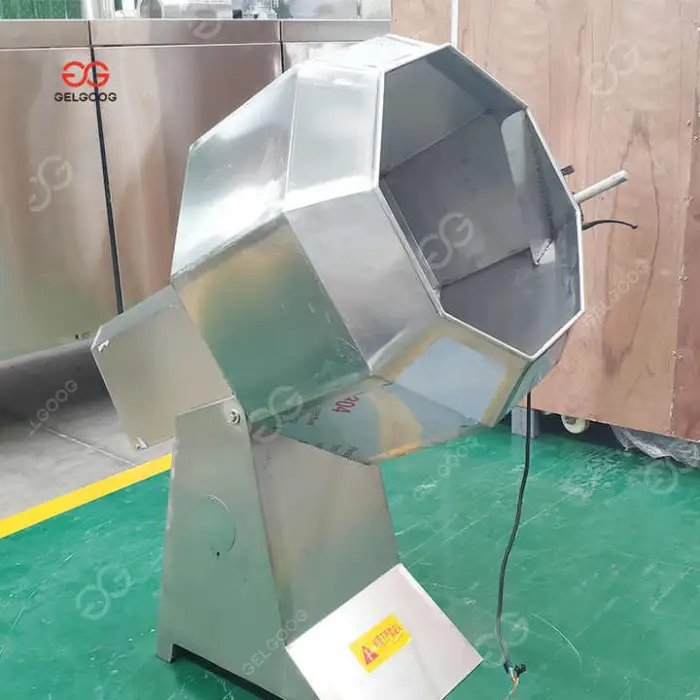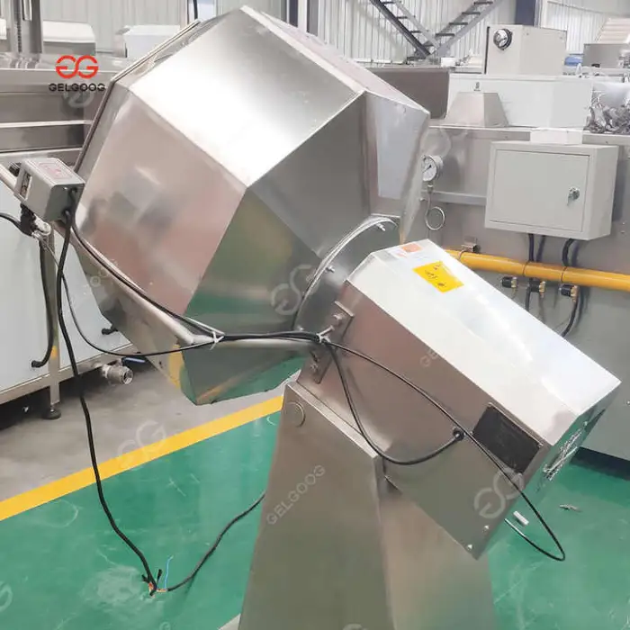 The Automatic Octangle Snack Coating Mixture Peanut Peas Mixing Mixer Seasoning Machine is suitable for a variety of snacks, including nuts, fruits, vegetables, and chips.