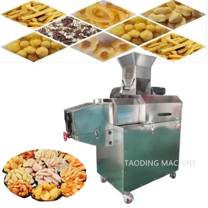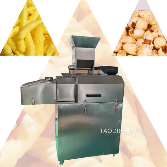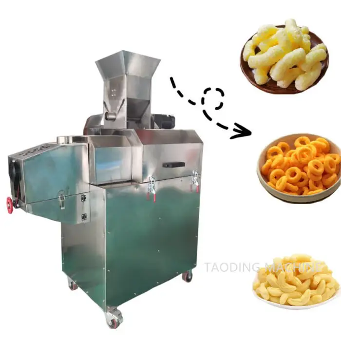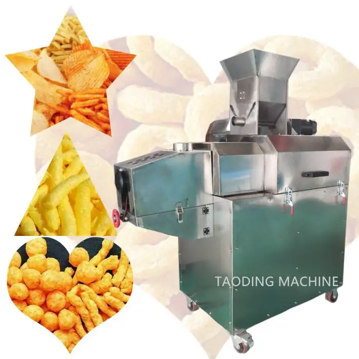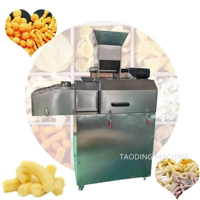 The machine is multifunctional and primarily designed for making broomcorn cheese puffs, but it can also produce a variety of other snack types.