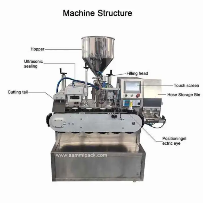 The main application of this machine is for filling and sealing various types of liquids in the cosmetic, food, and chemical industries.