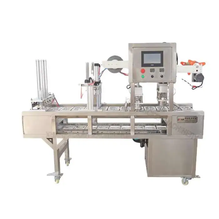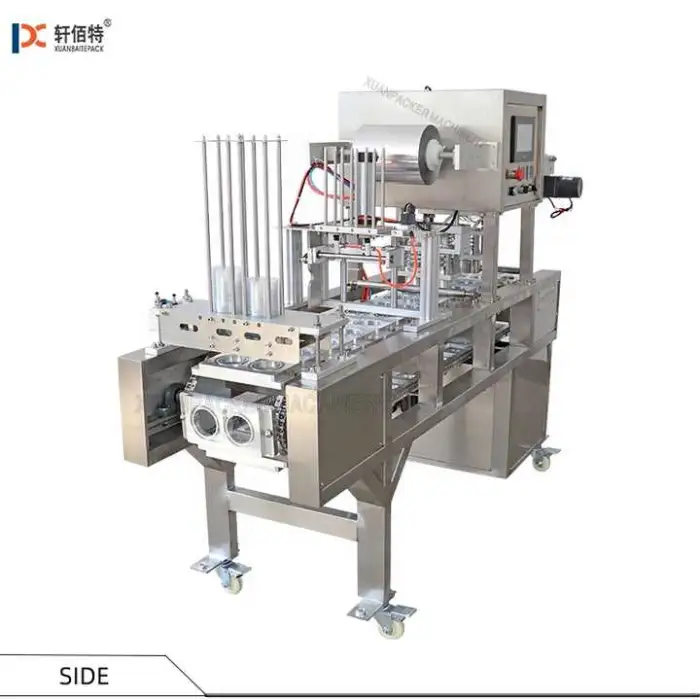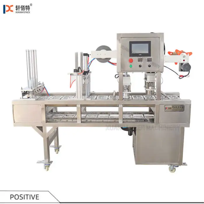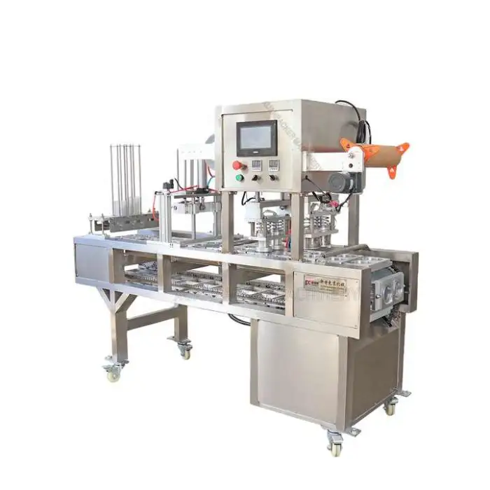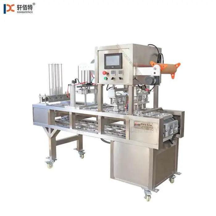The machine can seal plastic, paper and aluminum films and is suitable for a variety of sealing films used on cups and containers.