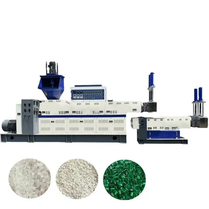 The machine is designed to handle various types of plastics, including PE (Polyethylene), PP (Polypropylene), and PET (Polyethylene Terephthalate).