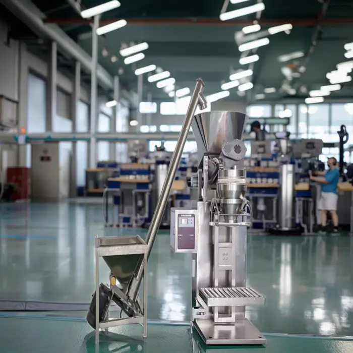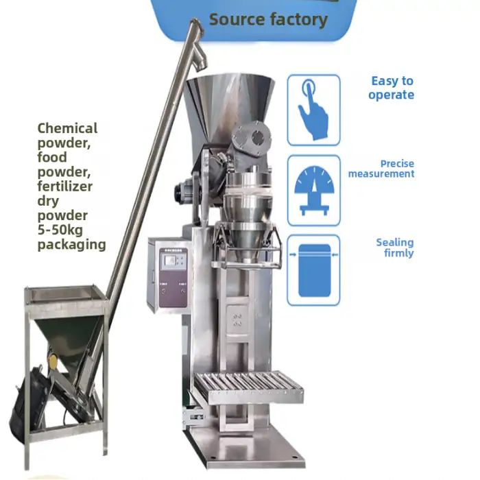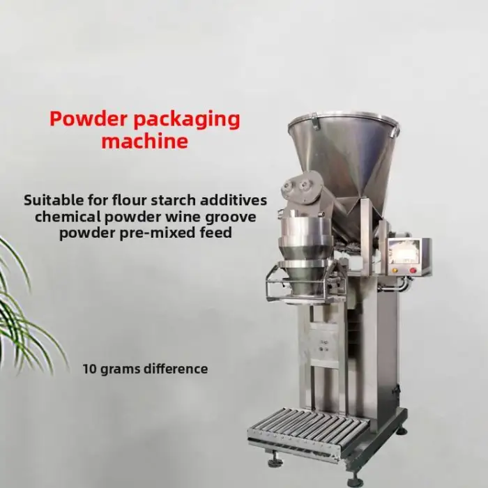 The machine is designed to handle powder and small granule materials, making it suitable for a variety of applications in food, pharmaceuticals, cosmetics, and chemicals.