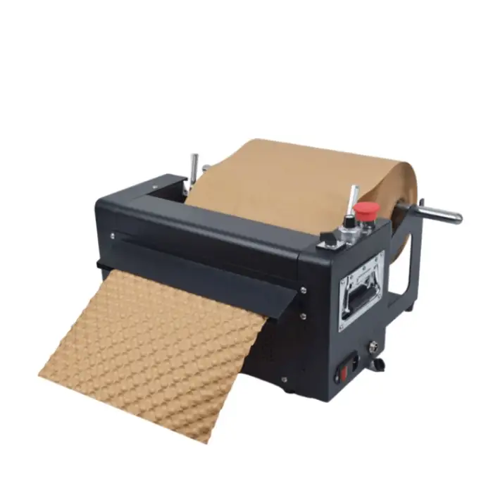 The machine automatically produces bubble paper cushions, minimizing manual effort and speeding up the packaging process.