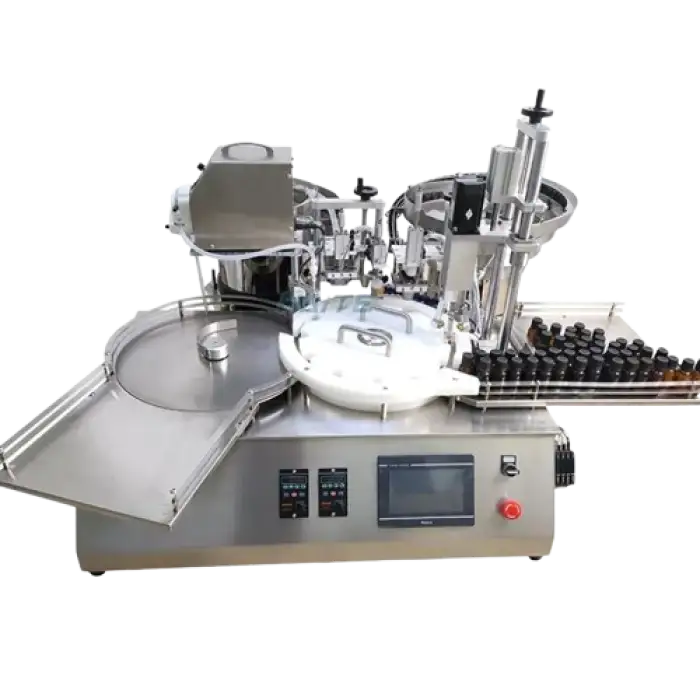 The main function of this machine is to efficiently fill and cap roll-on bottles with various types of liquids, including essential oils and perfumes.