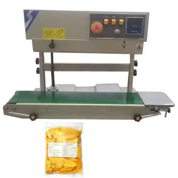 This Automatic Vertical Bag Sealing Machine is used to seal plastic bags and tubes quickly and reliably, suitable for food, commodities, chemicals, machinery parts and similar packaged products.